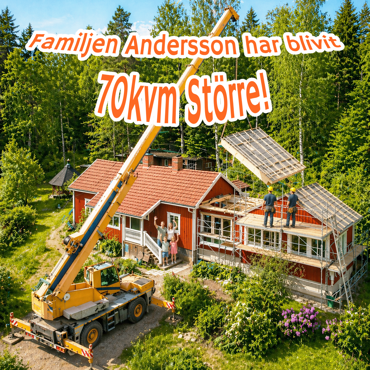 Fabrikstillverkade husdelar för din tillbyggnad. Vi planerar, ritar och bygger — du flyttar in i en större villa snabbare än du trodde var möjligt.