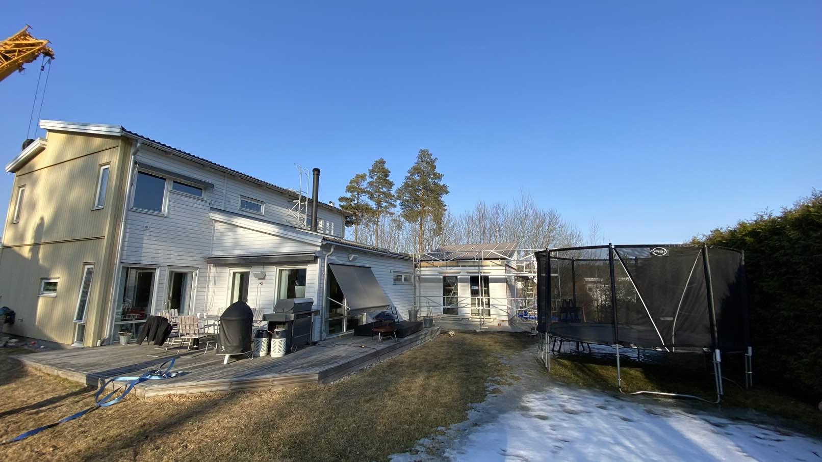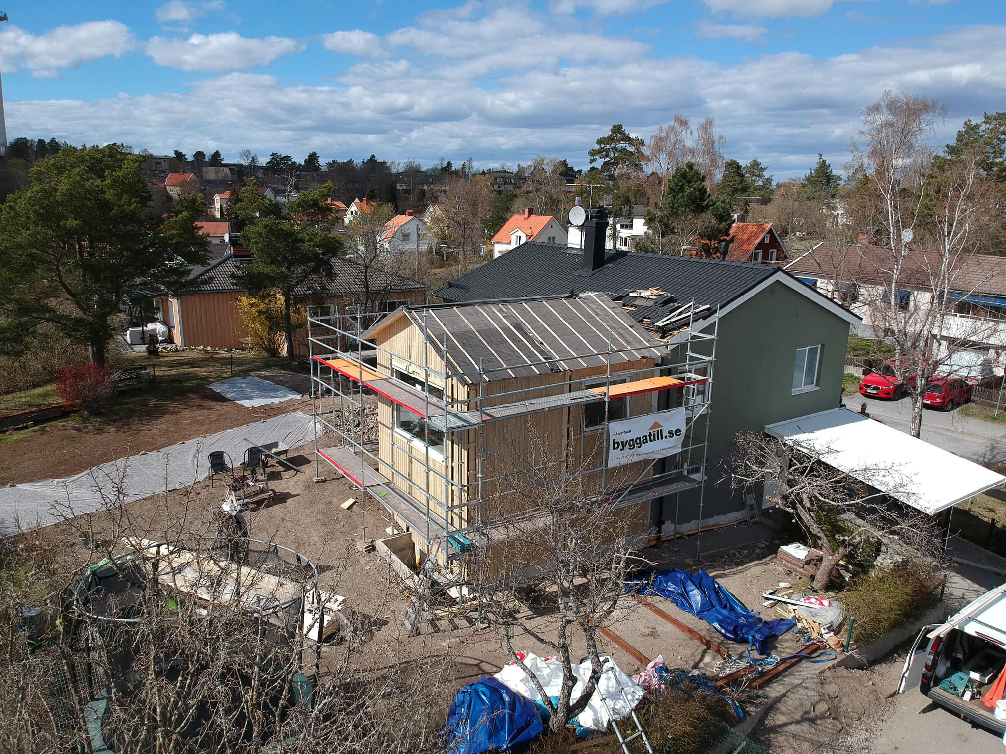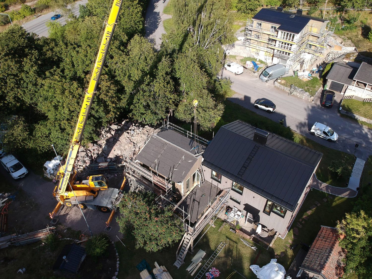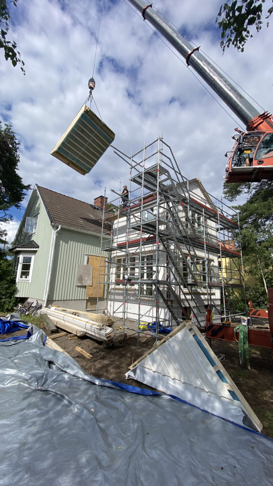 Tillbyggnaden + Attefallshuset monterades på en villa på Lidingö.