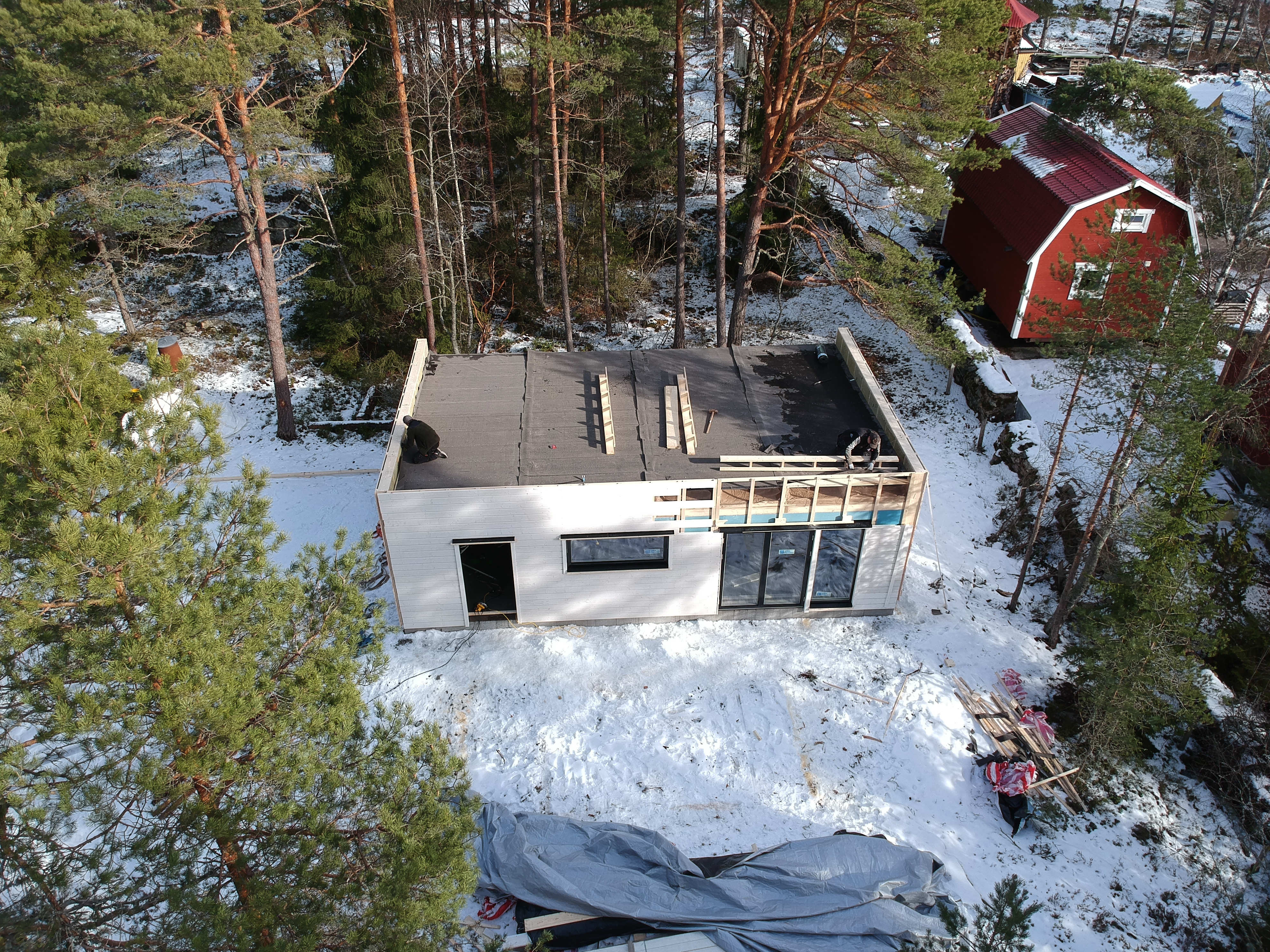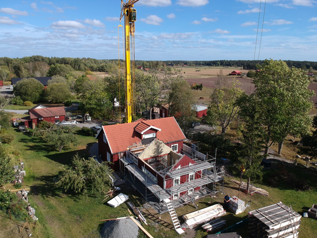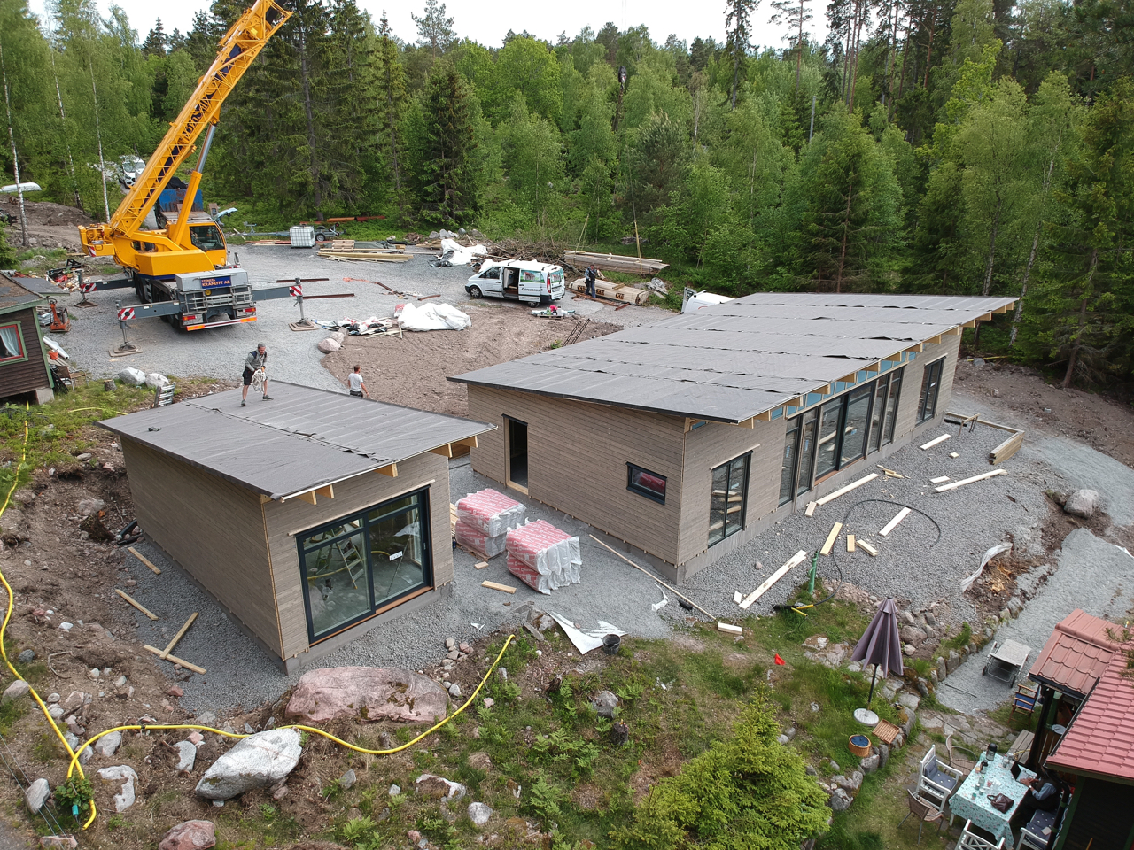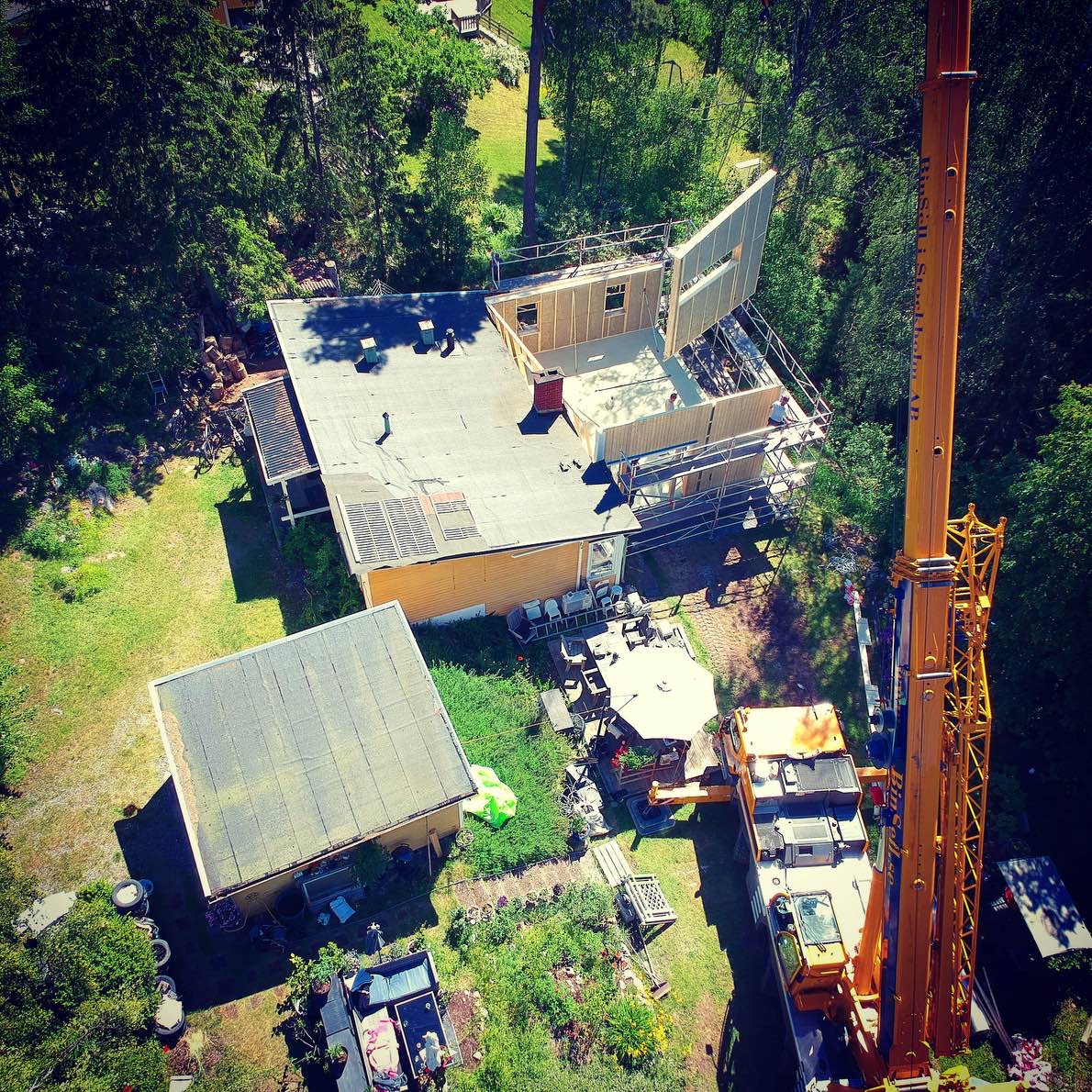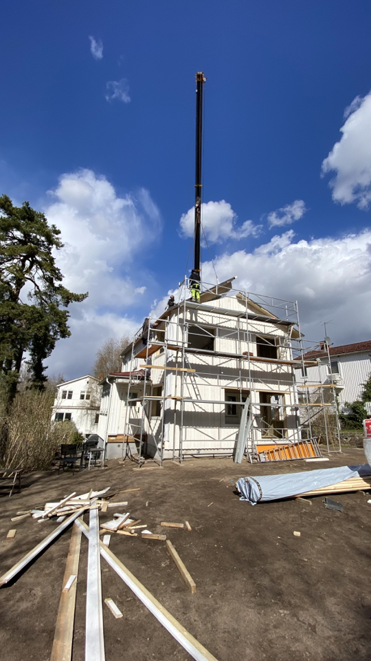 Tillbyggnaden + Attefallshuset monterades på en villa på Lidingö.