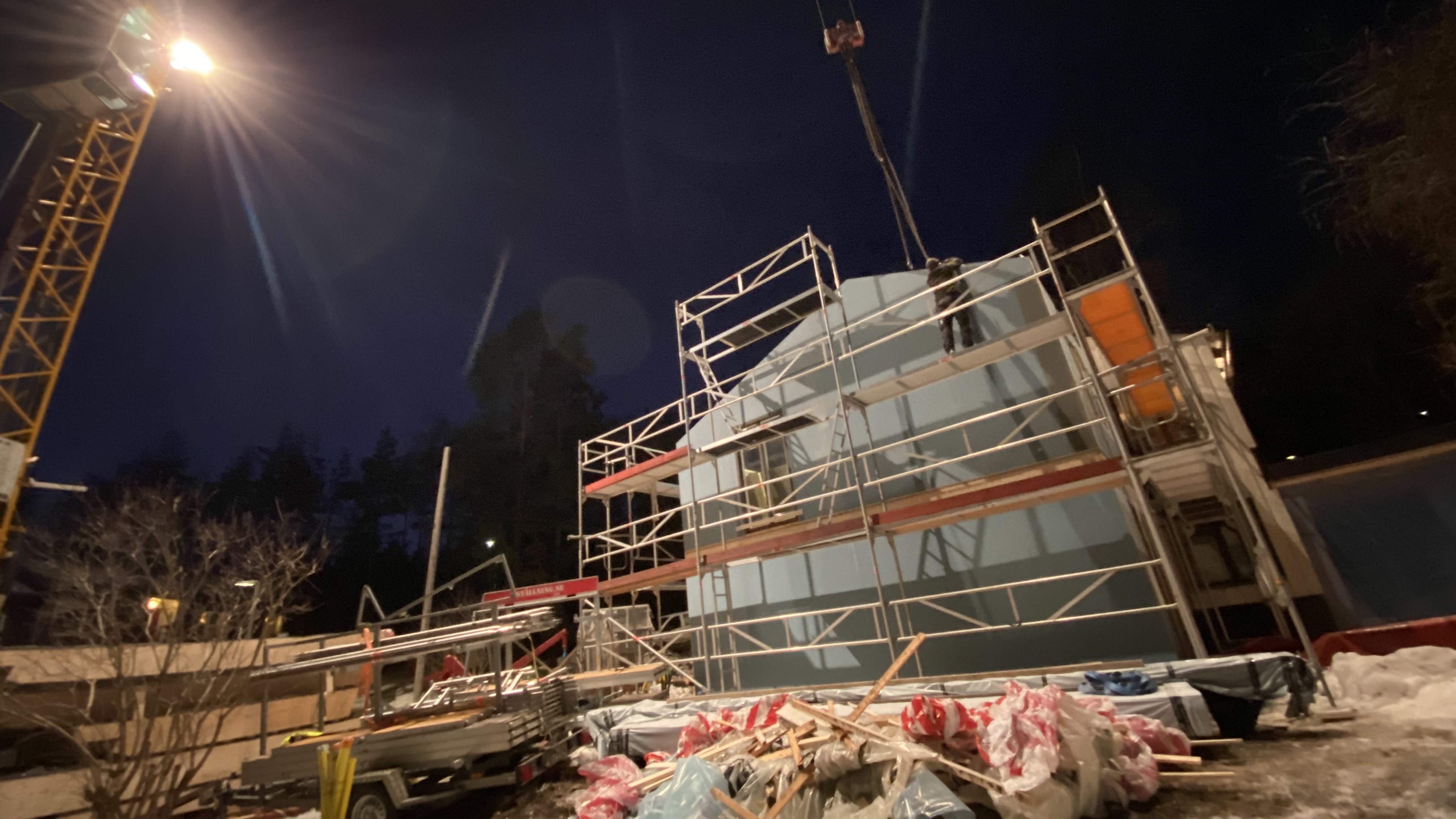 Tillbyggnaden monterades på en villa i Enebyberg.