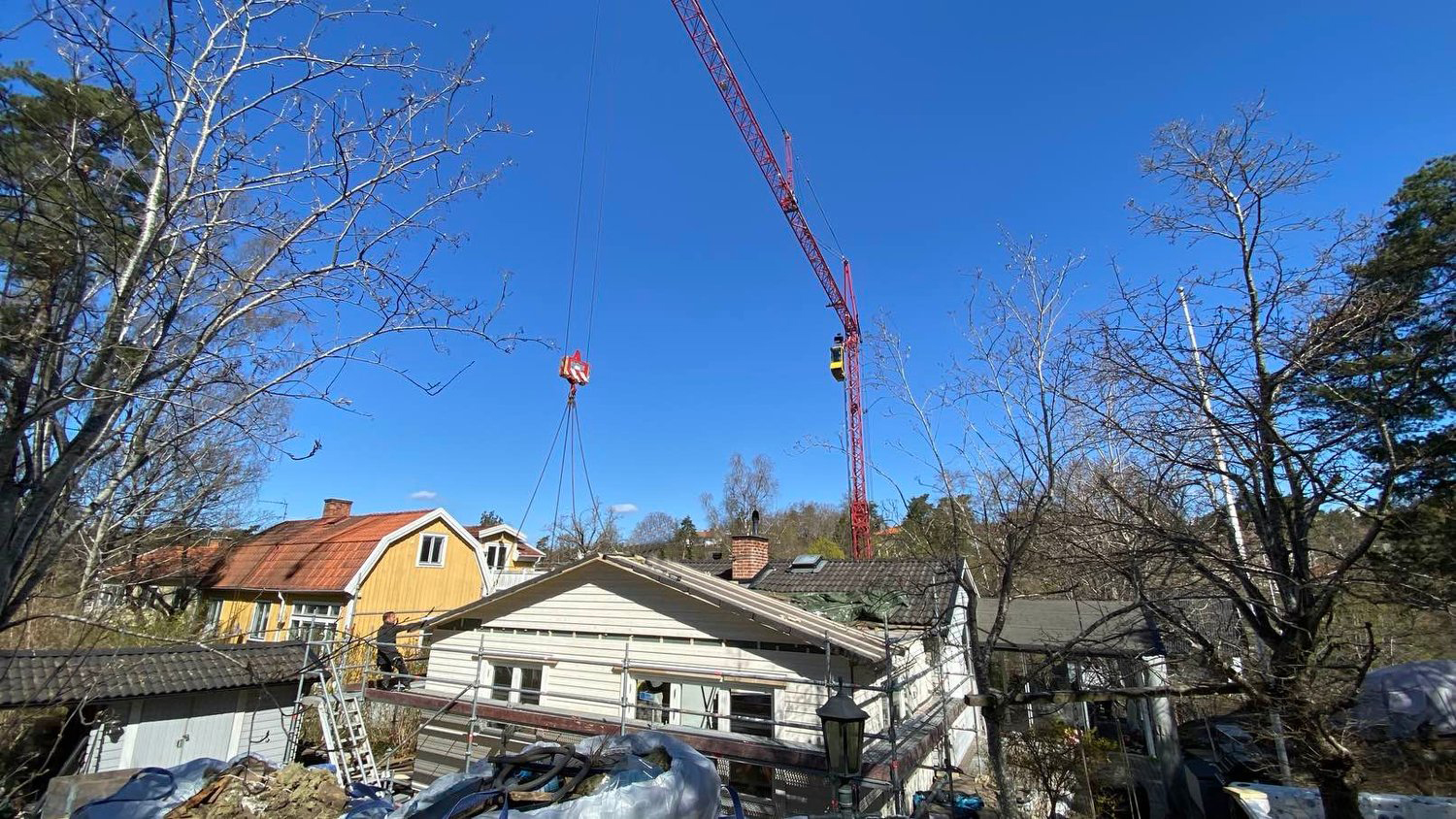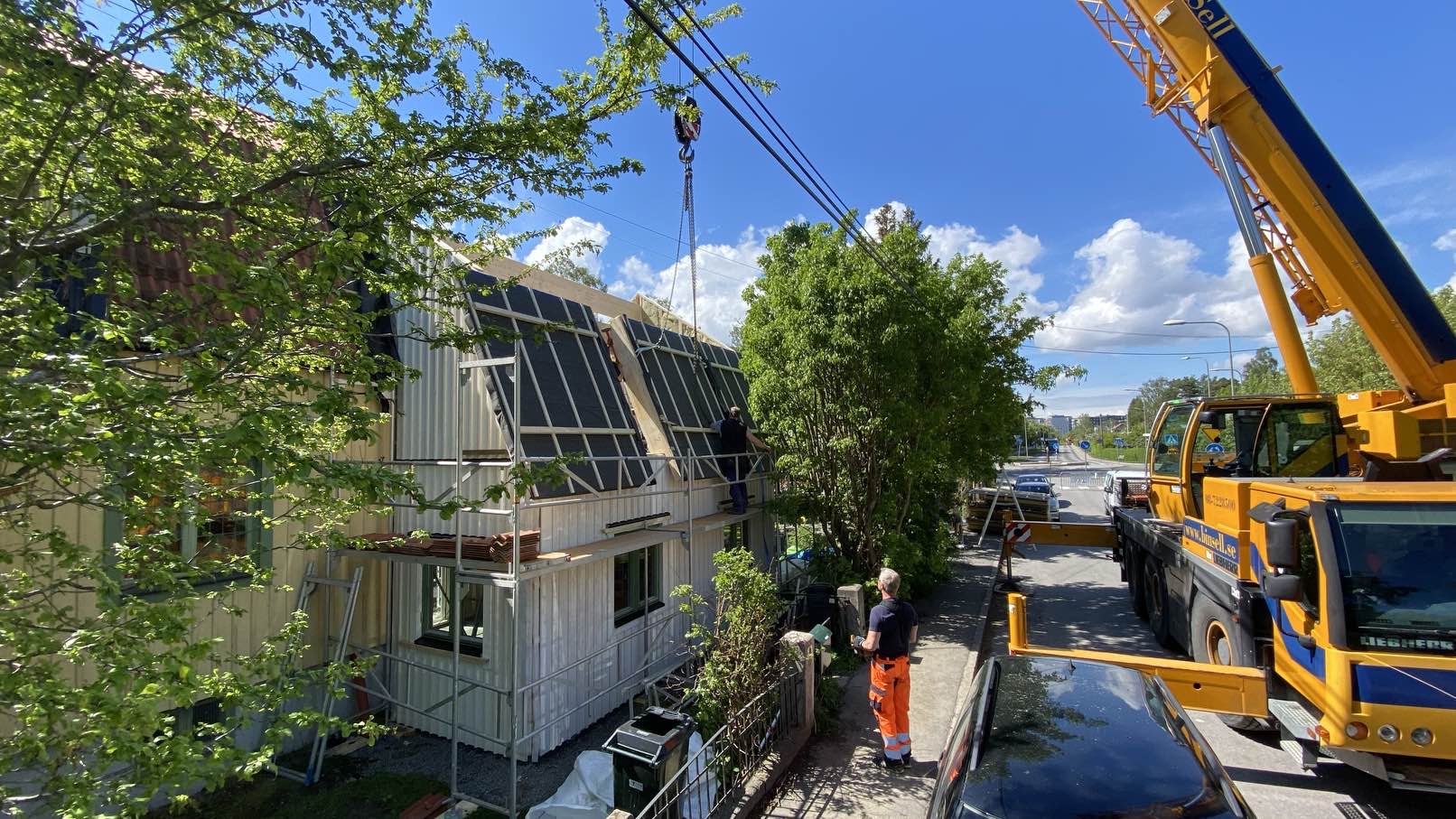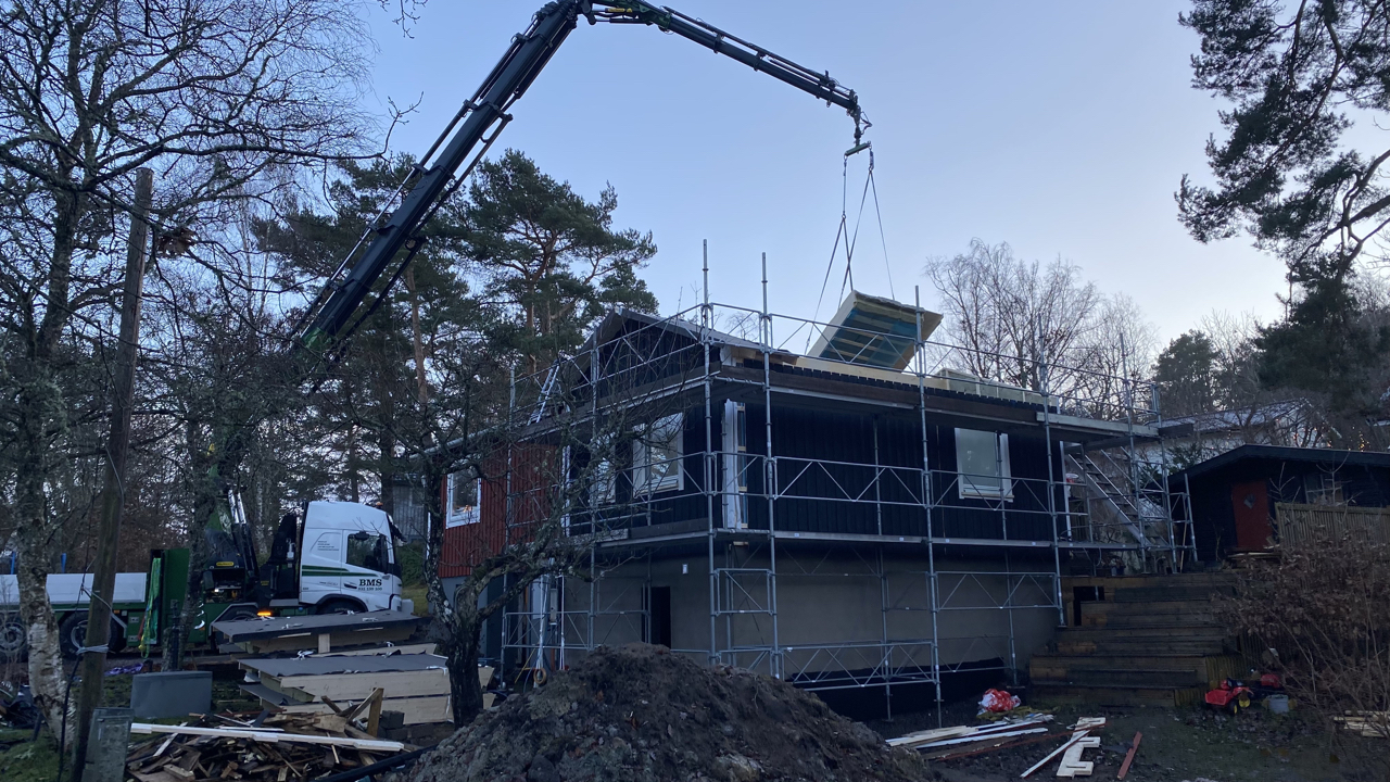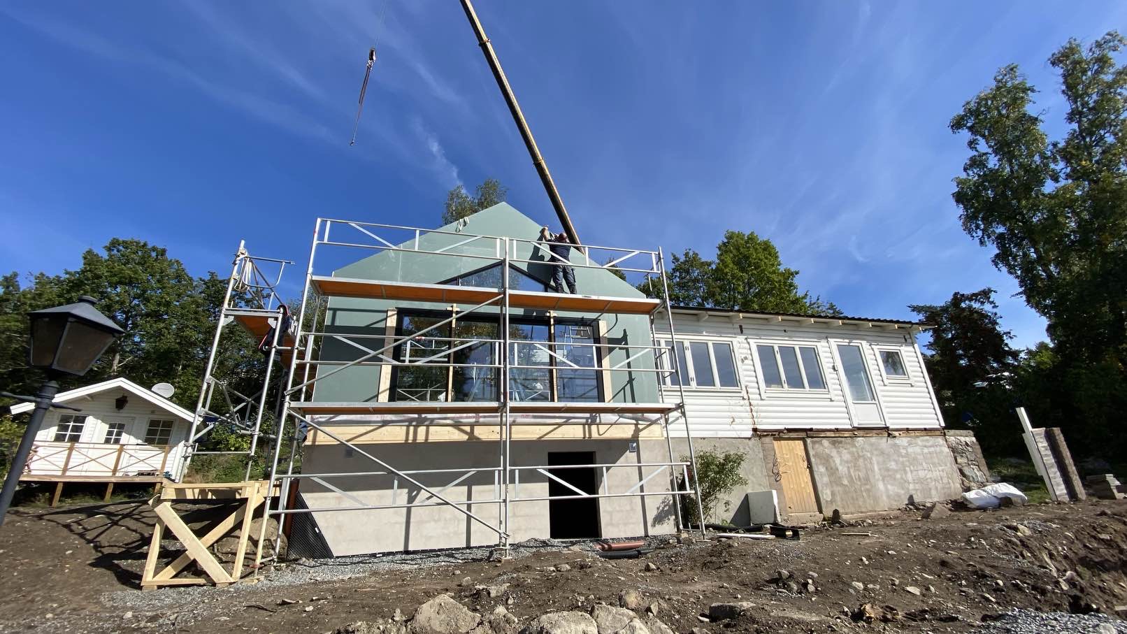 Tillbyggnaden monterades på en villa i Mälarhöjden.